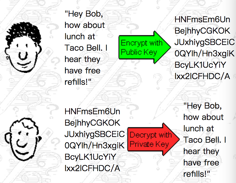 Susan要给Bob写一封加密的信,用Bob的公钥进行加密;Bob收到信以后,使用私钥解密。注意只要Bob的私钥不泄露,信件就是安全的。